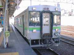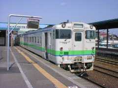 7:38 小樽駅到着。長万部行の普通列車(キハ150系(気動車))に乗り換える。