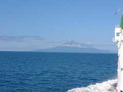 | 7:12 | 出航して40分経過し、進行方向やや左手に利尻富士(利尻山)が見えてきました(写真左下)。 |