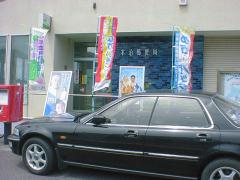 | 10:15 | 仙法志局到着(25.9km)。貯金、定小発行、MS発行、和文印、欧文印の記念押印をする。局前の駐車場には神社のお祭りがあるせいか、露店のテントが置いてありました。こんな光景は今まで見たことがありません(^^;。「仙法志」は欧文印とMSの欧文局名表示は「SENHOSHI」(せんほうし)、局入口の欧文局名表示は「SENPOSHI」(せんぽうし)。10:33・局を出る。 |