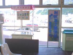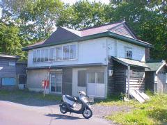 | 15:02 | 旧・鰊泊局(1997年3月29日廃止)の局舎跡をデジカメで撮影する(バイクは私が使っているレンタバイク)。まだ、「お取り扱い時間ご案内」が残っていました。郵便局舎らしくない局舎だったんですね。 |