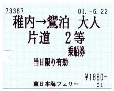 | 6:16 | 稚内フェリーターミナル到着。鴛泊(おしどまり)行きのフェリー乗船券を券売機で買う。稚内フェリーターミナルは6年振りの利用。6年前、ふるさと切手「レブンアツモリソウ」発売(1995.7.7)で、礼文島(香深)に行ったのですが、朝6時台なのに稚内局がフェリーターミナル内に臨時郵便局を開設し、「レブンアツモリソウ」切手を発売していたことを思い出します。 |