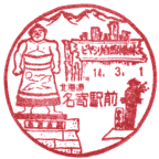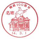 | 17:30 | 名寄局到着。和文印(金属、インク浸透式とも窓口にありました)、欧文印、和文ローラー印、欧文ローラー印(普段は使っていないため、日付をかえてもらいました)、そして今日から使用開始の新図案風景印と今日のみ使用の開局100年小型印を押す。風景印は記念押印分、友人あての実逓あわせて葉書250枚以上に記念押印。カウンターが低いところで押していたのですが、中腰状態での押印作業は腰に痛みが走り、非常にツラいため、お客もそれほど来ない状況なので、18時20分頃、ロビーにある椅子を借りて、座って押印作業することに。 (消印等印影集→消印等印影集/名寄郵便局) |