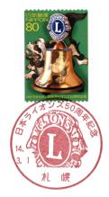 | 11:48 | 札幌中央局に行き、ライオンズ50周年記念切手貼りカードに記念押印機用特印を押してもらう。12:10局を出る。 | ![]() |
