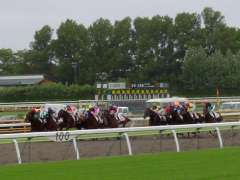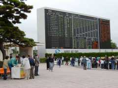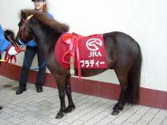 | 9:50 | そのあと、第1、2レースを観戦。勝った馬の馬番は第1レースが9番、第2レースが4番。ともに私のラッキーナンバー!(4月9日生まれなので(^^;)でも、買ってません(^^;。今日のレースの面白馬名は、第1レースの「アシデマトイ」号と、第5レースの「チチンプイプイ」号ですね。「アシデマトイ」号の馬券は買い損ねましたが、「チチンプイプイ」号は買いました(^^;。また、かわいいポニーをデジカメ撮影してしまいました(^^)。 |