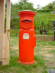 | 14:30 | 厚沢部に入ってから同乗者なのに寝てしまい、気が付いたら江差市街でした(^^;。まずは江差郵便局に寄り、丸形ポストを撮影する。丸形ポストに入れられた郵便物の取出口はポスト投函口の右側にありました。たいていは前、苫小牧の1つが後ろにありましたが、横についているのは初めて見ました。そして、「ゆうゆう窓口」にて風景印を記念押印する。 |