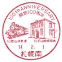 | 13:45 | 定山溪郵便局到着。100円貯金と50円定額小為替発行、風景印、和文印、和文ローラー印、欧文印、欧文ローラー印、和文機械印を記念押印、私製葉書差し出しによるメータースタンプ(料金証紙)を発行する。定山溪局の局名は「渓」ではなく、「溪」が正しいのですが、「渓」を使っているのもあります。 | ||