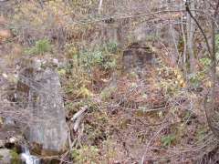 | 11:55 | 押印が終わり、定山渓温泉に向けて「下山」する。戻りはおおむね「下り」なので、帰りは1km5分ペースで走る。途中、定山渓から豊羽鉱山まで貨物用の鉄道(豊羽鉱山専用線)だったところの橋の跡などを撮影する。 |