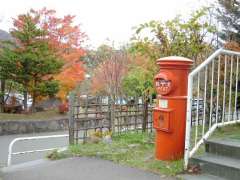 | 14:17 | 定山渓温泉病院前に到着(本来は先ほど乗ったバスで、降りたバス停から2つ先の錦橋入口バス停で降りた方が近かった(^^;)。丸形ポストを撮影する。 |