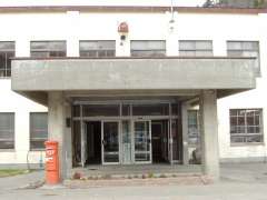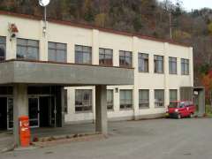 | 11:28 | 1kmおおむね6分ちょっとのペースで走ってきて(一応、道道なので、起点から1kmごとの距離表示はありました)、スタートしてから約12km、約1時間20分でやっと豊羽鉱山が先に見えてきました(^^)。そして、いよいよ豊羽鉱山の手前に到着。「総合事務所」という方向に進み、坂を駆け上がっていくと、事務所の建物、そして丸形ポストが見えました(^^)。 |
