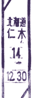| 15:05 | 仁木郵便局到着。100円貯金と50円定額小為替を購入、和文印(インク浸透式印)、和文ローラー印、欧文印の記念押印、50円メータースタンプ購入による私製葉書差し出しをする。15:15・局を出る。既に、小樽方面・札幌行の高速バスが行ってしまったため、約30分は仁木町内でウロウロすることに(^;。 |