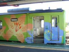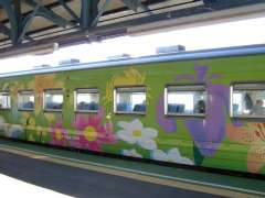 | 8:12 | 根室駅に到着。釧路行・普通列車に乗る。車両はいろんな花が描かれている、ペインティング車両でした。 |
