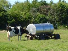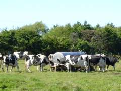 | 12:29 | 和田簡易局の前まで戻ると、簡易局に入るときにはえさを食べていた牛は1頭だけ(写真左)でしたが、15分後には大勢の牛がえさを食べようと次々並んでいました(^^;(写真右)。 |