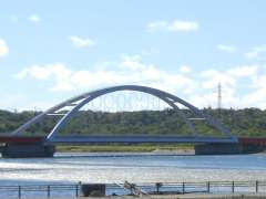 | 12:49 | 温根沼簡易局を出て、このあとは局廻りではなく、国道44号線を釧路方面に進み、温根沼簡易局から6.5km先の道の駅「スワン44ねむろ」に行って、道の駅スタンプを押すことに。ただ向かい風が強く、スイスイとは進まず(^^;。途中、根室西浜局風景印に描かれている「温根沼大橋」を撮影。そして、かわいい子どものエゾシカを発見し、撮影しようとしたのですが、すぐに草むらに隠れてしまいました(^^;;;。 |
