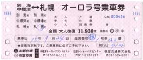 | [《根室駅前ターミナル》22:00→(北都交通・オーロラ号/札幌行)→翌日・6:31《札幌駅前・全日空札幌支店前》(往復運賃11,930円(割引中))] |