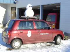 | 14:07 | やっと早来雪だるま局の前に到着。局前には雪だるま形のポストが設置されています。で、郵便局にあるクルマの1台はクルマの上に雪だるま形の「あんどん」が乗ってました(^^)。 |