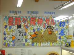 | 14:12 | 局内に入り、年賀印押印のお願いをする。あらかじめ年賀印押印のお願いをファクスでお知らせしていたので、すんなりとインク浸透式の和文印の日付を差し替えて、「16.1.1 年賀」にしてもらい、年賀葉書に年賀印を押印する。局ロビーには「星野かんとく 阪神をサル」と来年の干支・サルにかけた絵がありました。まわりにはびっしりと雪だるまです(^^)。 年賀印は金属印だと押印するのに気合いを入れて、力も入れて押すため、かなり疲れるのですが、インク浸透式印は力を入れなくても押せて、失敗もあまりないので、ほんとに楽です(^^)。 |