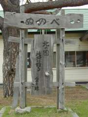 | 12:00 | 麓郷局近くの麓郷木材工業(株)で「北の国から」パスポートスタンプを押す。ドラマでは「中畑木材工業」という会社名での登場ですが、しっかり「中畑木材工業株式会社」の看板もありました(^^;。入口横に倉本聰さんのメッセージもありました。 |