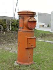 | 12:40 | 麓郷から富良野局へ約16kmの道のりを自転車で戻る。途中、国道38号線沿い・扇山小学校(富良野若葉局から南に約200mの位置)の敷地内に使用されていない丸形ポストを発見。デジカメ撮影する。ポストの差入口の部分には「郵〒便 POST」の文字が完全にありませんでした(^^;。 |