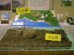 会場には、堀達也北海道知事のコメント、「北の大地II」切手の原画模写、そして有珠山噴火や被災地の様子などの写真パネル、有珠山噴火による火山灰や火山礫(れき)、有珠山周辺の模型展示が展示されています。また、有珠山周辺の市町村の特産物の見本や観光パンフレットも置いてあります。火山礫が飛んでくることを考えると、やはり現地の方にとってはすごく恐ろしい気持ちで毎日を過ごされたんだな、と感じました。