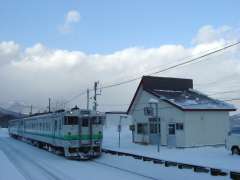 | 12:22 | 銀山駅で降りる。このあと郵便局へ行く地図を持たずに、駅から左手の道を行ったところ、除雪をしているクルマがいて、作業している方に聞くと、ここは道路ではないとのこと(^^;。そのあと駅に戻って、駅からまっすぐの道を下ったものの、郵便局は無し。実は駅前の道路を右手に入った道を降りたところに郵便局があったのに、遠回りするハメに(^^;。 |