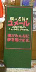 金森倉庫群の金森洋物館内にある「はこだてサンタ臨時郵便局」前にサンタポスト「ユメール」があります。ポスト横の看板表記が中国語、ハングル語、英語にも対応しています。(2004.10.25提供) |