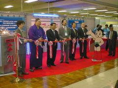 10時前、テープカットが行われました。駐日モンゴル大使(左から3人目)、そしてモンゴル出身で、モンゴルの切手に登場した大相撲の旭鷲山関(左から2人目)もおりました。なお、投函口の下に「21」と書かれているポストは、21世紀最初の日、2001(平成13)年1月1日の日付印(記念の小型印が押される)用のものです。