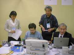 準備不足は否めません。実質的にぶっつけ本番状態でした(事情があり、ソフトの事前準備ができませんでした)。来年からは前日のうちにソフトをインストールして、スムーズに処理できるようリハーサルなど行って、準備万端で望みたいですね(下はデジカメで取り込んだ写真を葉書やシールに印刷している作業のところ)。