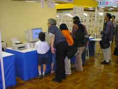 パソコン郵趣コーナーでは、デジタルカメラで上半身を撮影し、切手みたいな形にして葉書やシールなどに印刷するコーナーを用意しました。