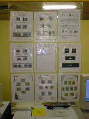 パソコン郵趣コーナーではアルバムリーフレイアウトシュミレーションソフト「Vリーフ」のパワーポイントによるデモと製作例の展示をしています。(写真下)